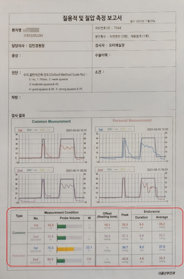 질수축력 : 25% 향상 29.9mmHg → 37.3mmHg